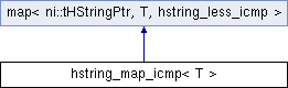 Public Member Functions inherited from map< ni::tHStringPtr, T, hstring_less_icmp > | |